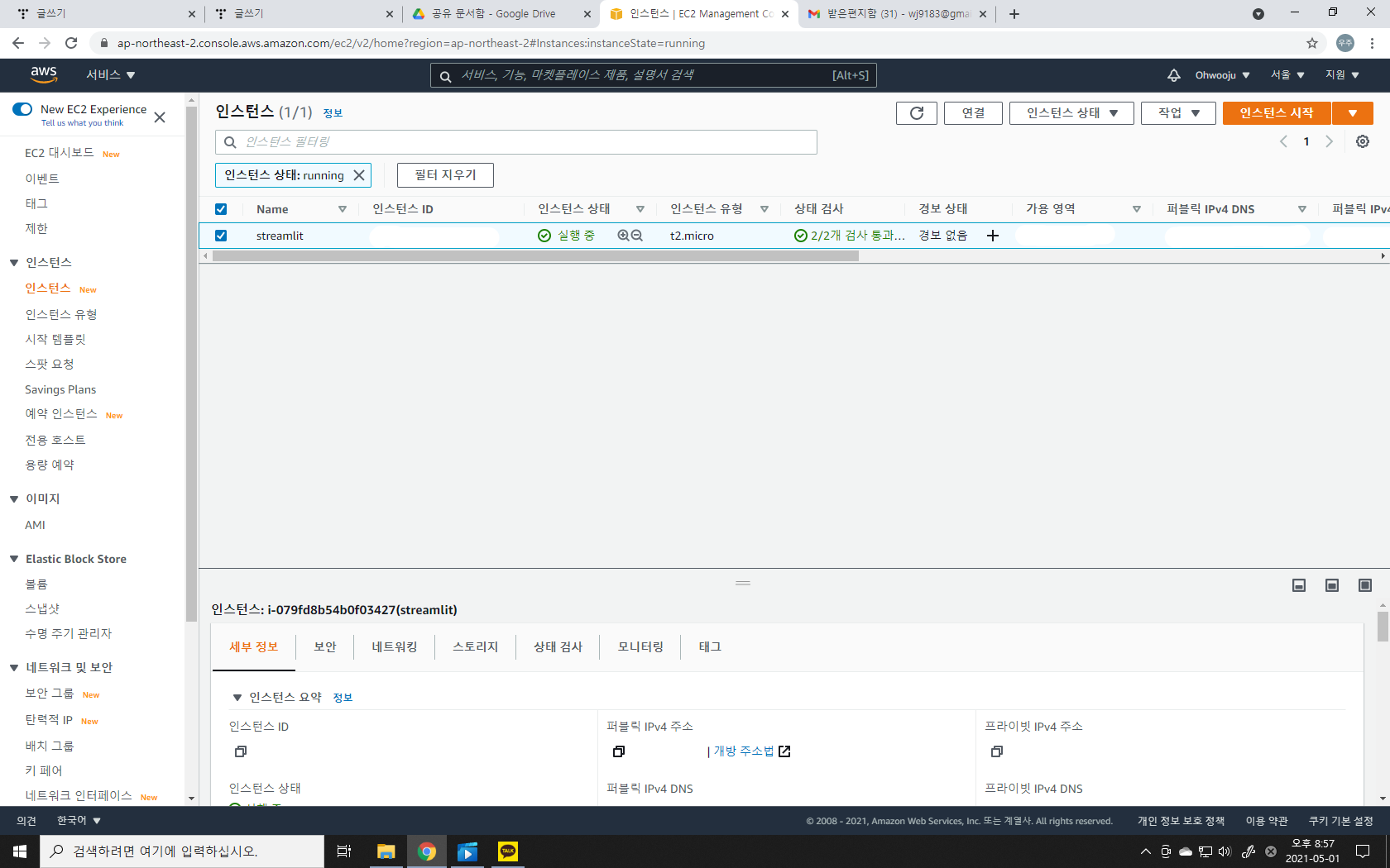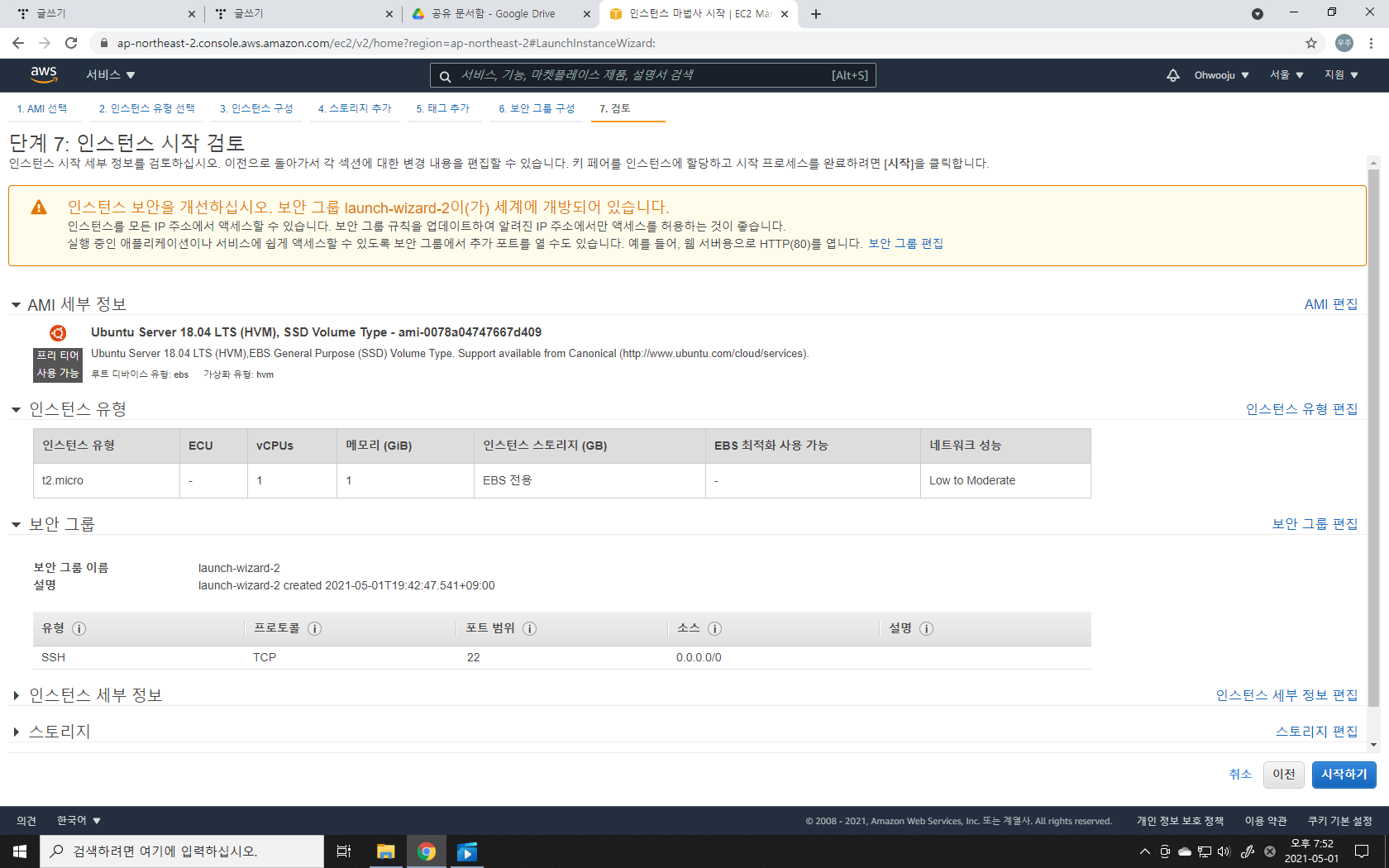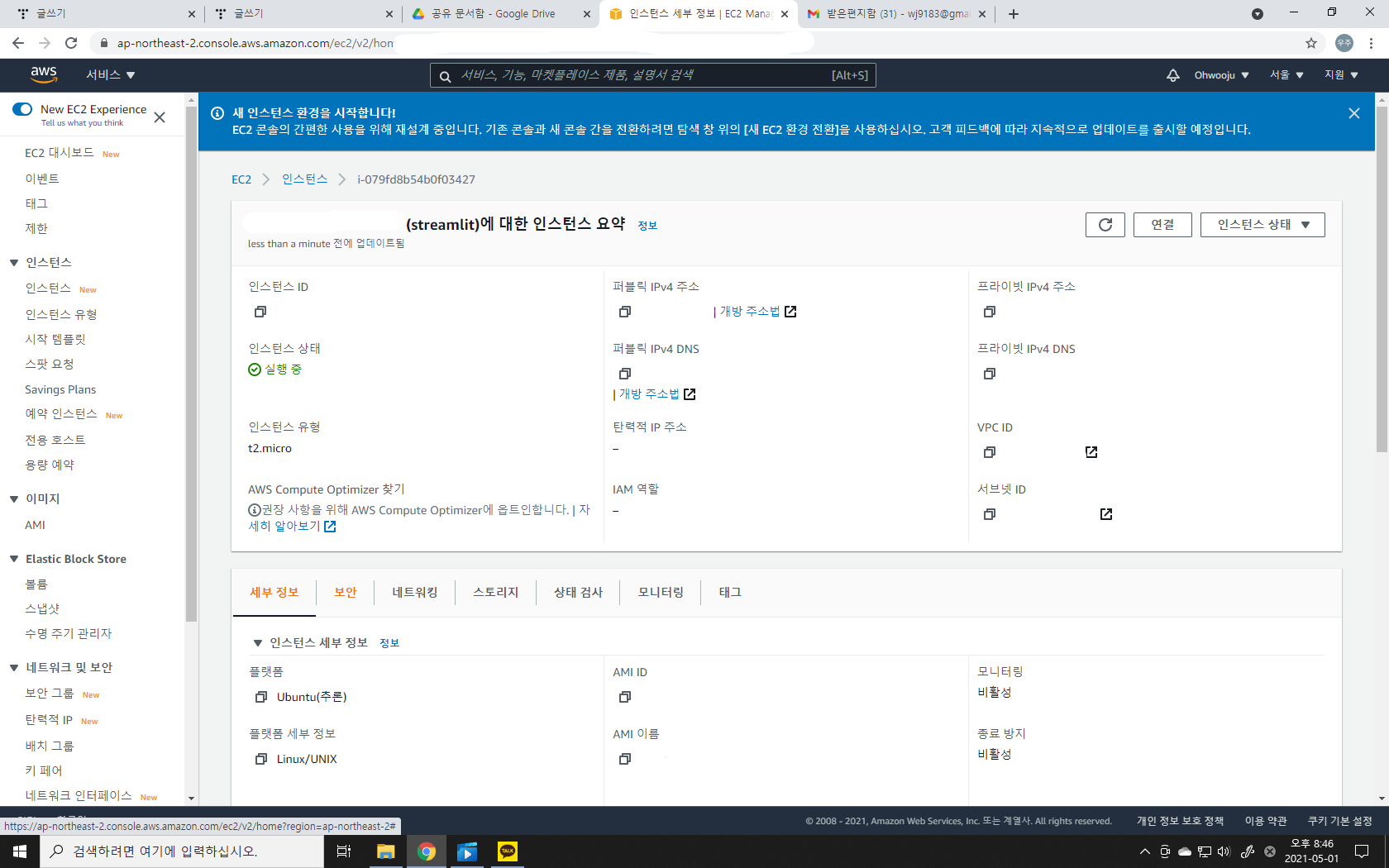 이제 다시 아까 작업중이였던 aws 창을 열고, 이미지에는 보이지 않지만 퍼블릭 주소를 복사한다.