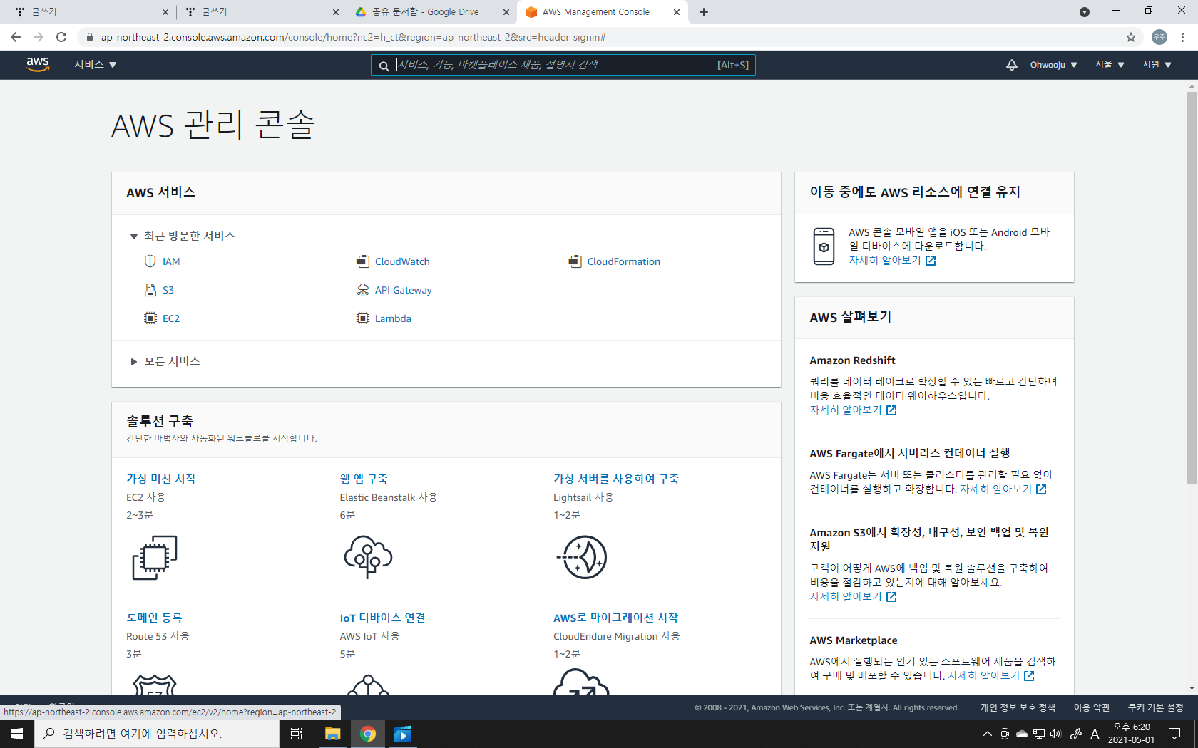 1. 먼저 AWS에 로그인을 한다. 따로 이미지를 첨부하지는 않았다.