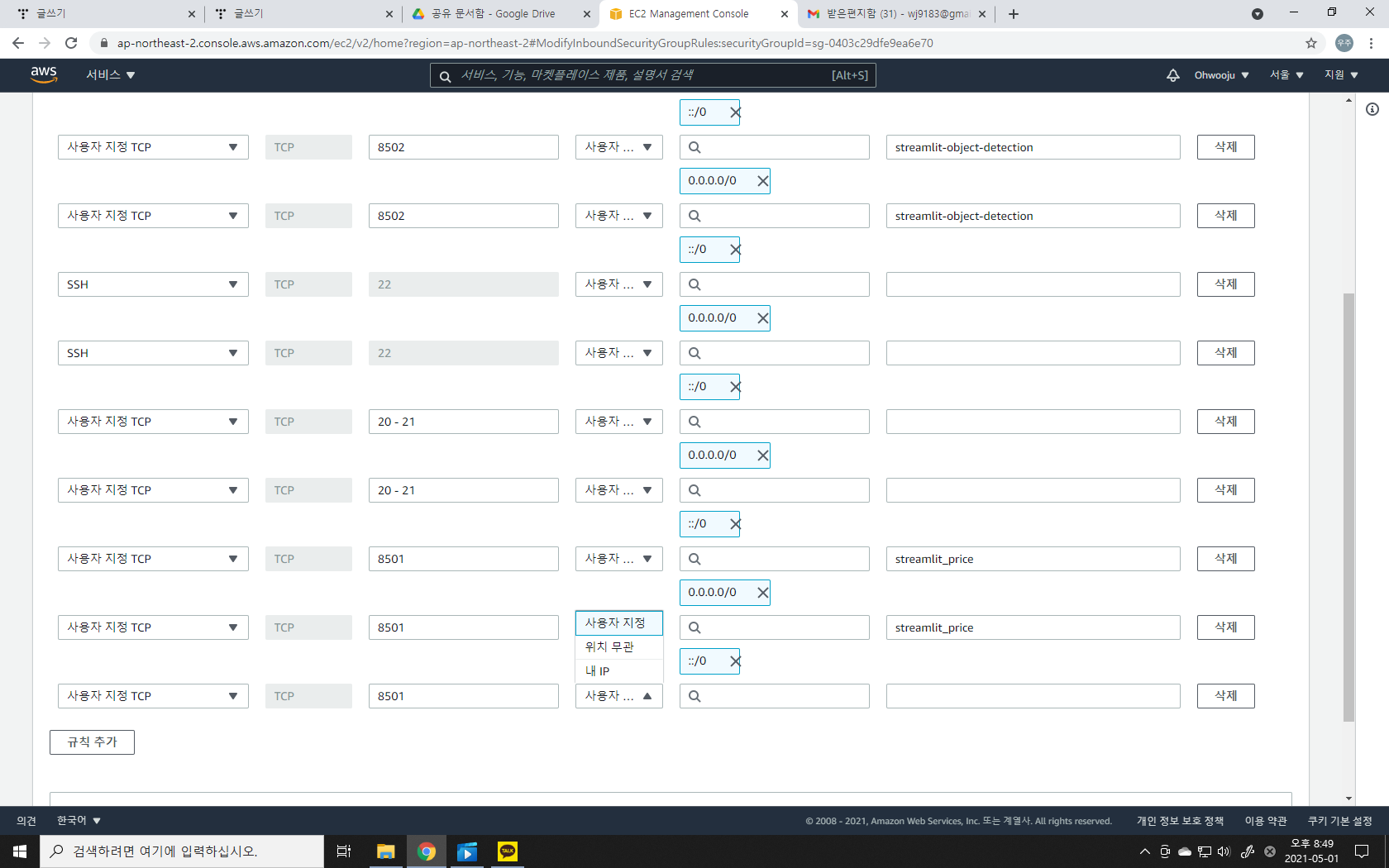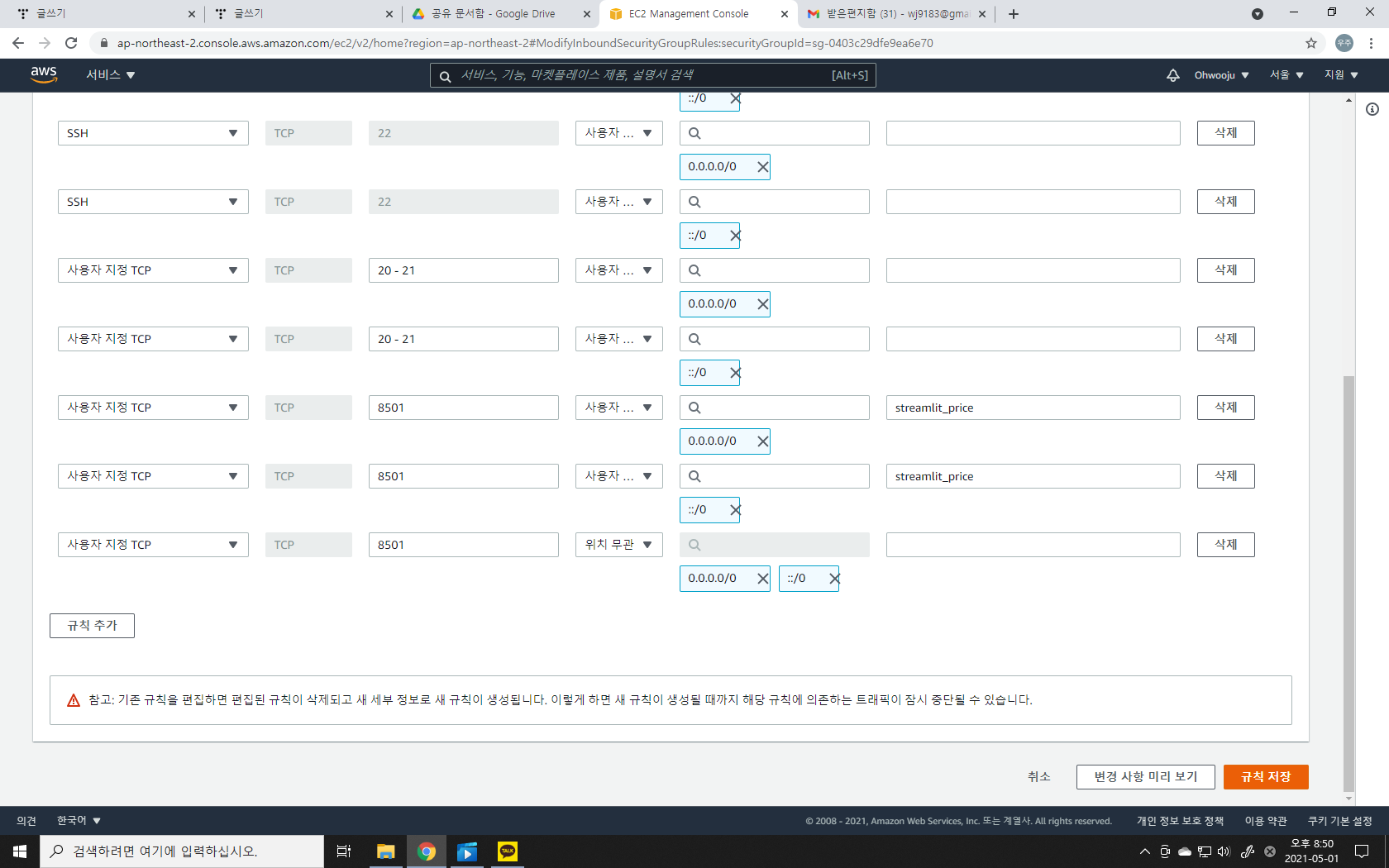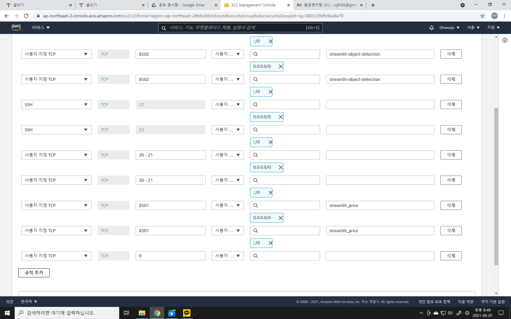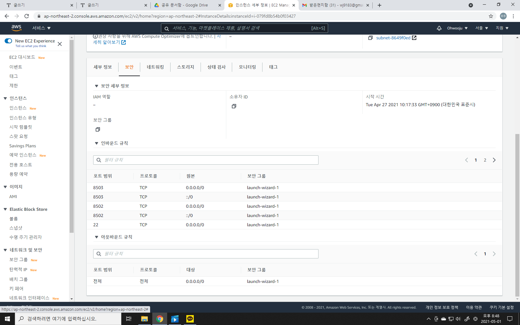 9. 보안그룹에서 인바운드, 아웃바운드를 설정해줄 수 있다.