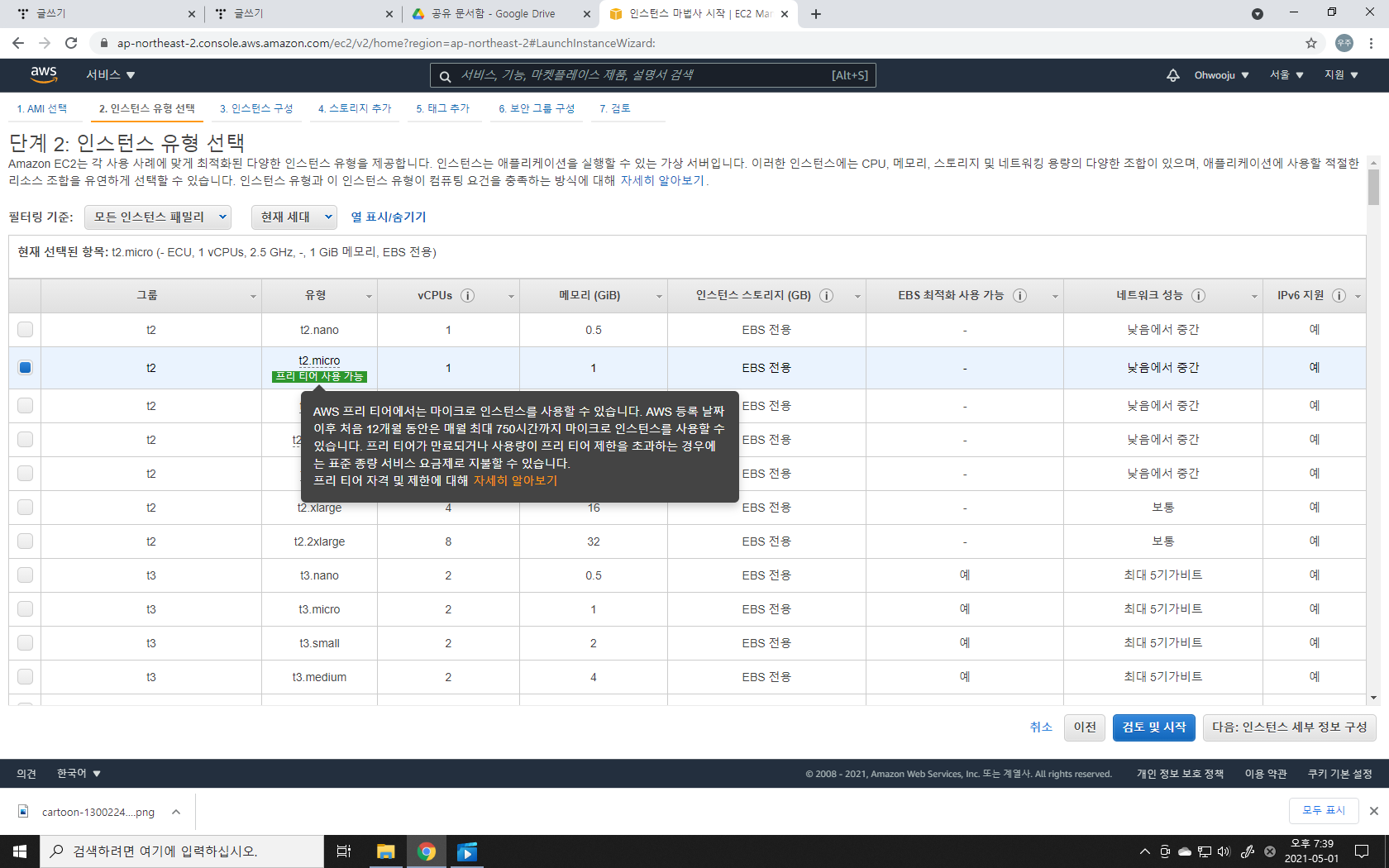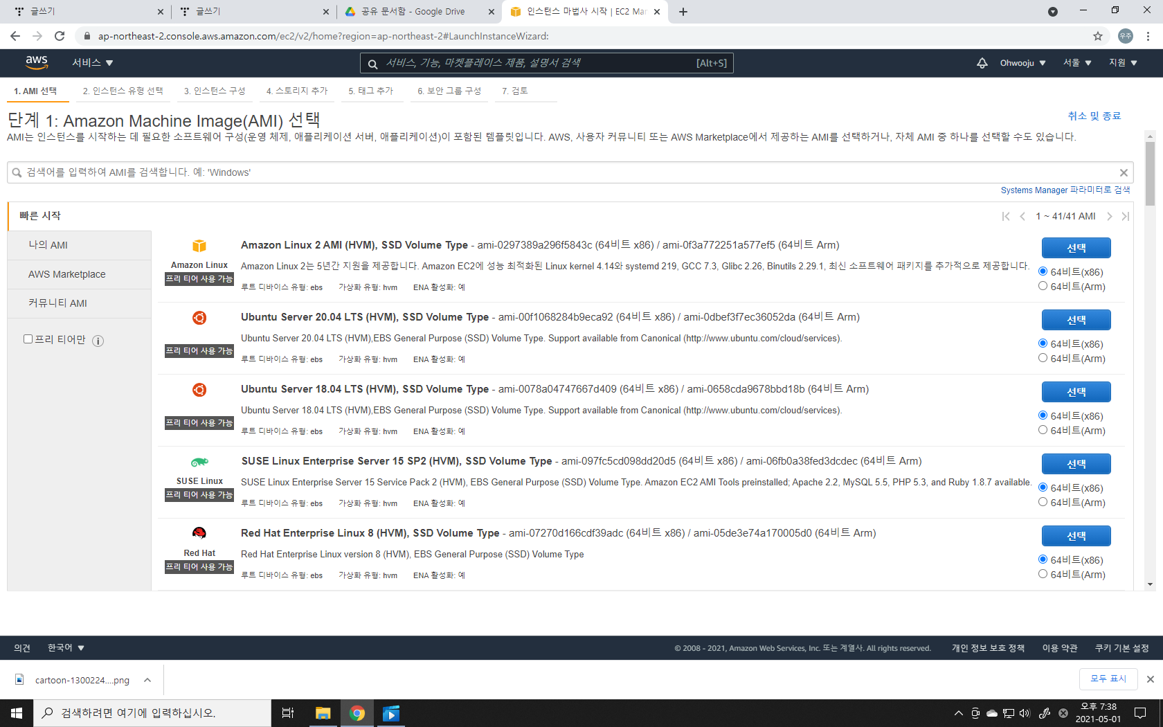 5. AMI를 선택한다. Ubuntu Server 18.04 LTS, 64비트로 선택했다.