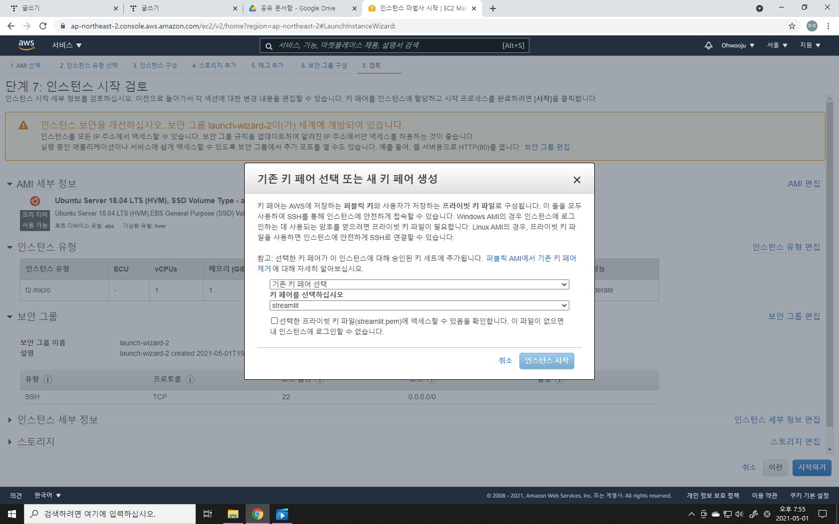 ssh 프로토콜로 서버에 접속을 해서 환경설정을 할 건데, 키 페어를 잃어버리면 억세스를 할 수가 없다.