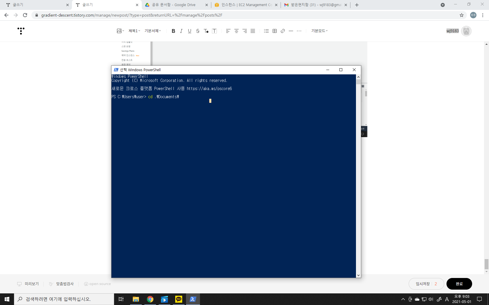 본인은 C:\Users\user\Documents 이 디렉토리에 저장해두었기에 아래와 같이 명령어를 작성했다.