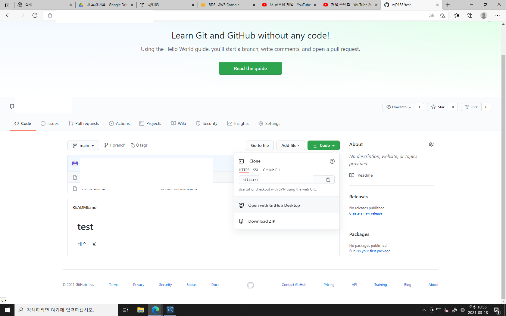 이제 github에 접속해준다.
