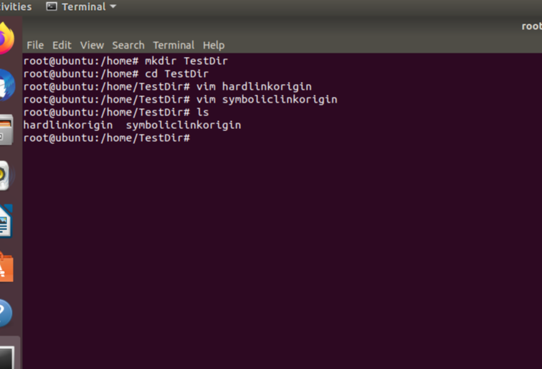 같은 방법으로 symbolic link의 원본이 될 파일도 하나 만들어준다.