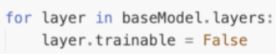 아래의 코드로 frozen layer (새로 학습시키지 않을 레이어들)과