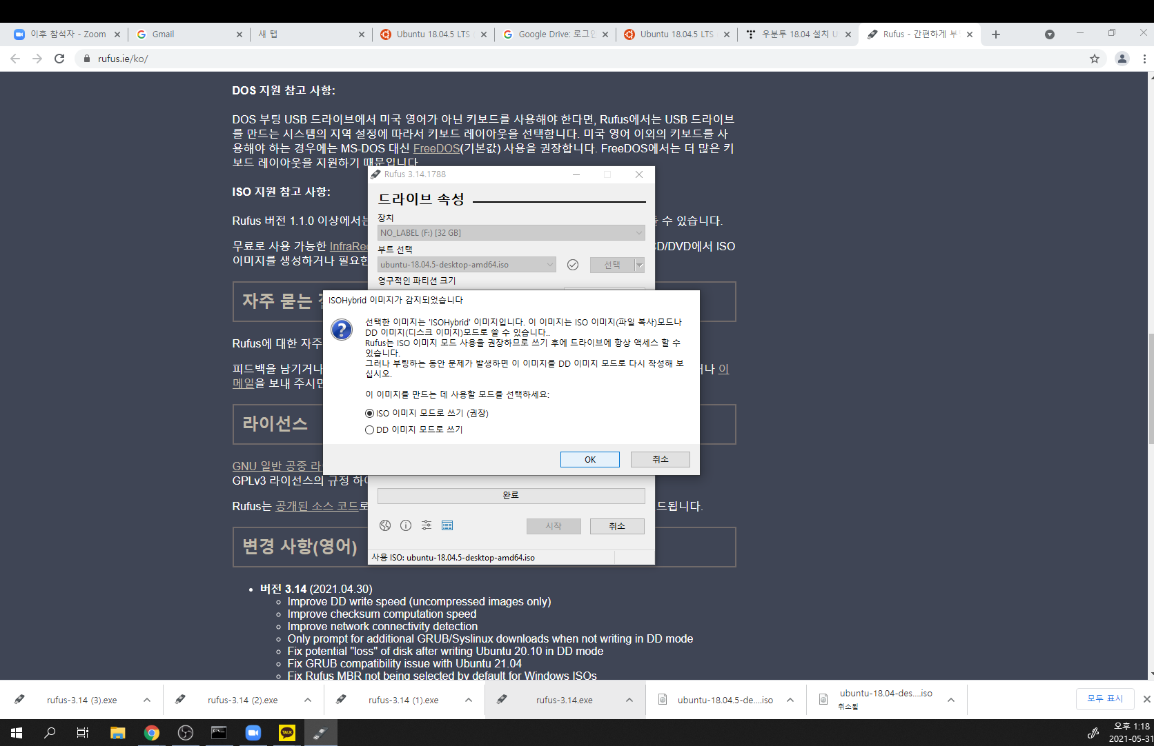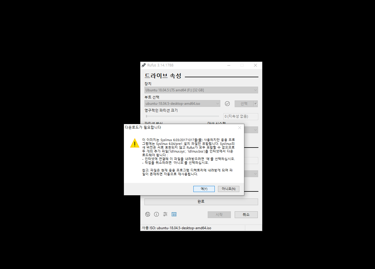 usb는 포맷될 것이고, 필요한 파일은 알아서 다운받아준다는 말이였다.