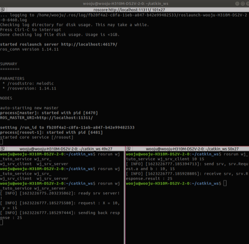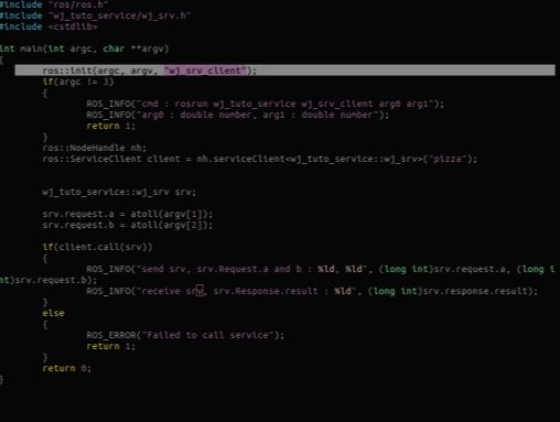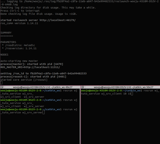 | rosrun wj_tuto_service wj_srv_server rosrun wj_tuto_service wj_srv_client |